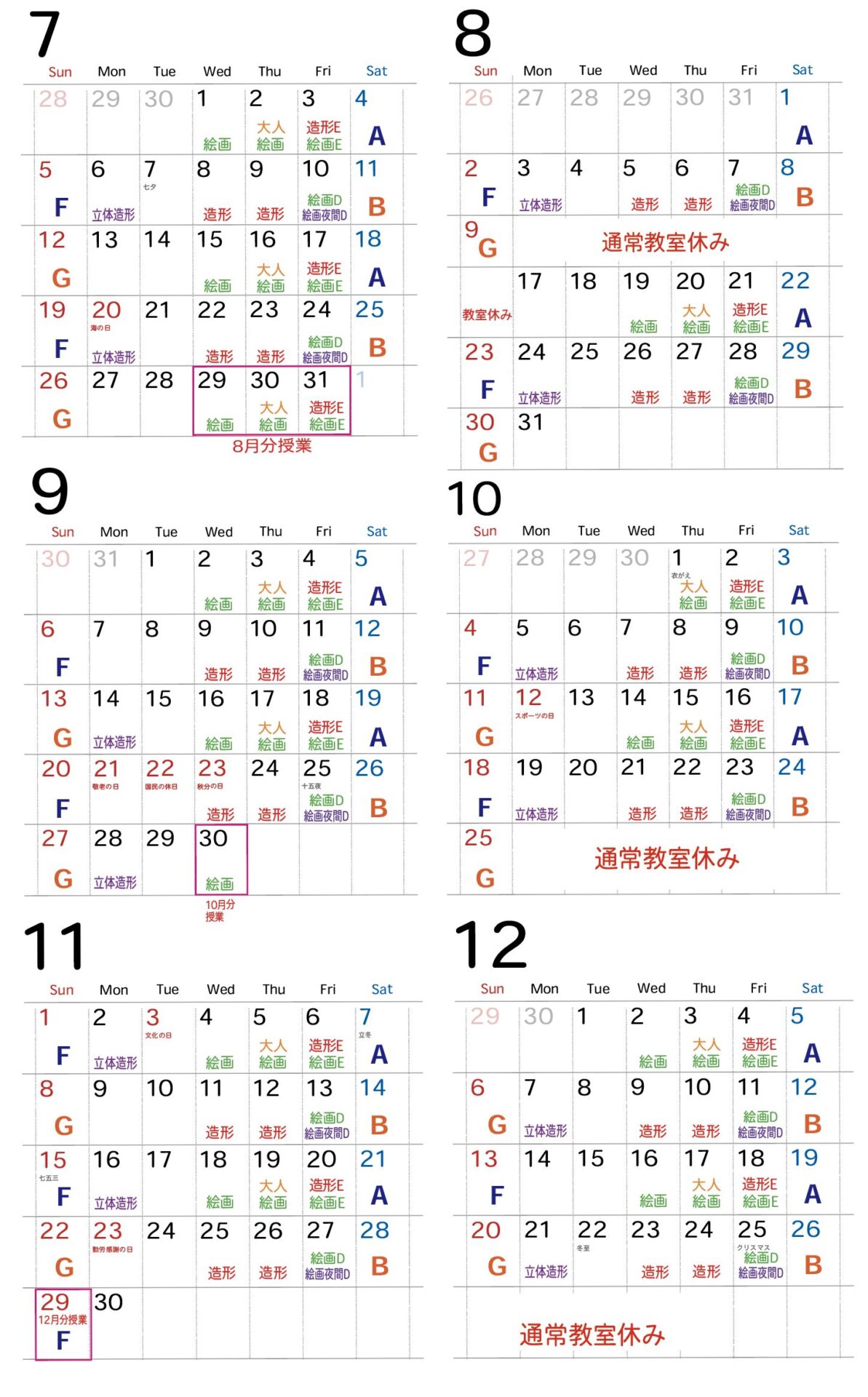 ※教室生徒さまは、Comiru<座席管理>カレンダーにて出欠のご確認をお願いいたします。