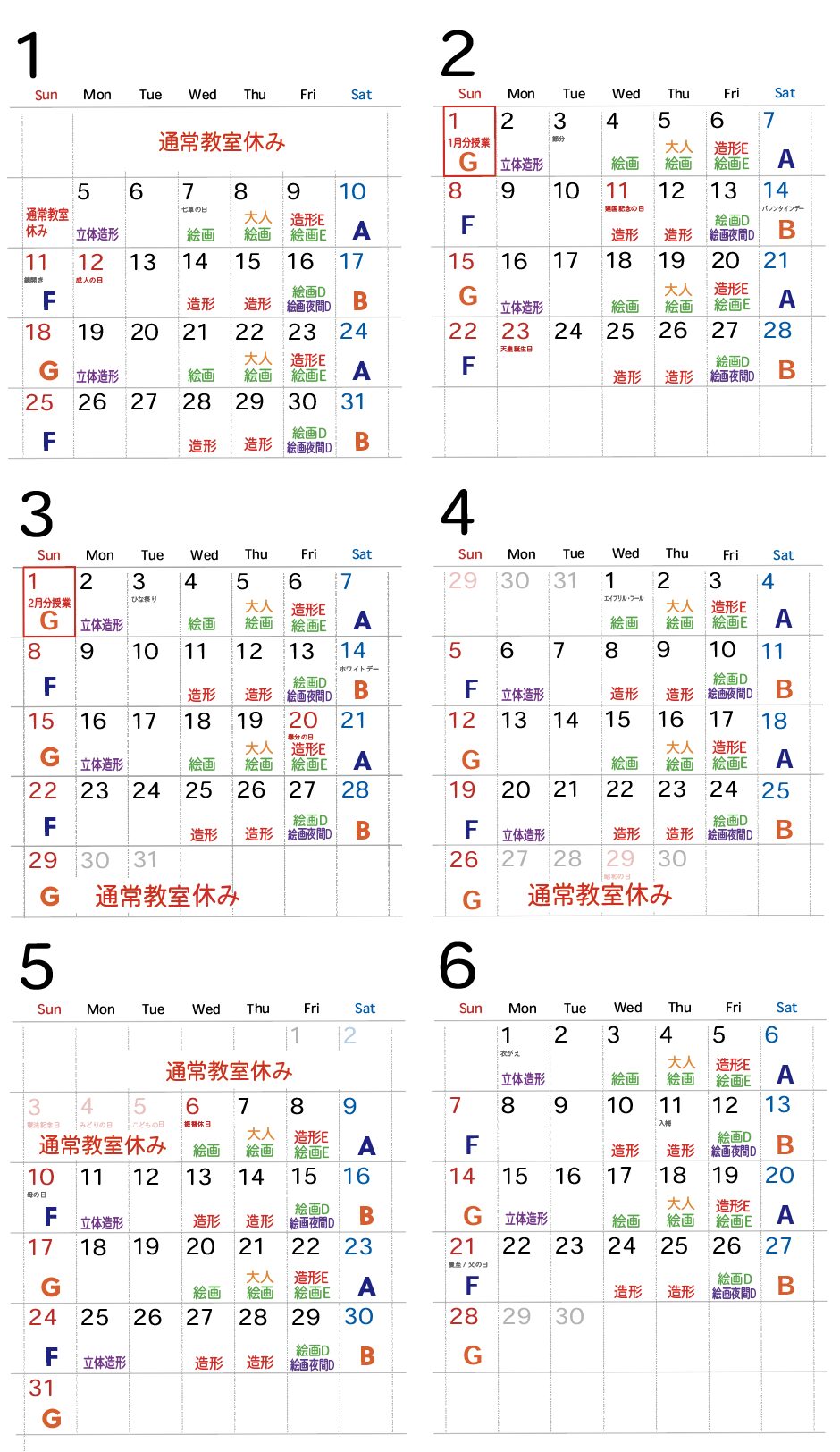 西八王子教室 カレンダー