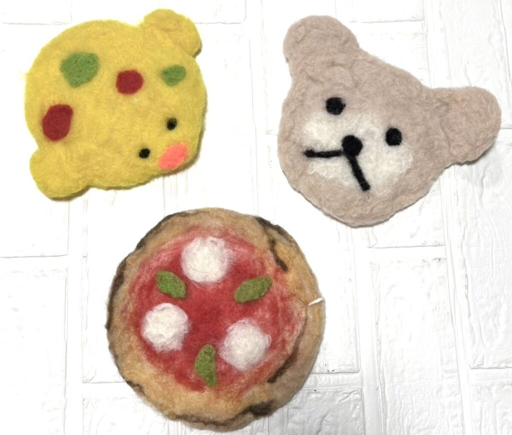 暖かいお湯で羊毛をこすり、仕上げにニードル(針)で形を整えます。